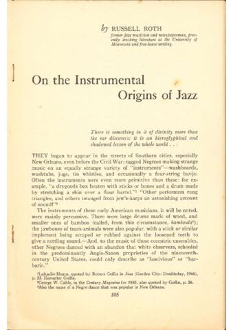 Unidad documental compuesta 000730 - On the instrumental origins of jazz