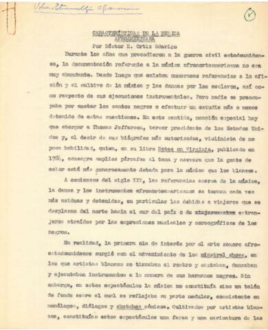 "Durante los años que precedieron a la guerra Civil estadounidense, la documentación referente a la música afronorteamericana no era muy abundante. Desde luego que existen numerosas referencias a la afición y al cultivo de la música y las danzas por los esclavos, así como respecto de sus ejecuciones instrumentales. Pero nadie se preocupaba por anotar los cantos negros o efectuar un estudio más o menos detenido de estas cuestiones. En este sentido, mención especial hay que otorgar a Thomas Jefferson, tercer presidente de los Estados Unidos y, al decir de sus biógrafos más autorizados, violinista de no poca habilidad, quien, en su libro Notes on Virginia, publicado en 1784, consagra amplios párrafos al tema y asevera que la gente de color está más generosamente dotada para la música que los blancos.